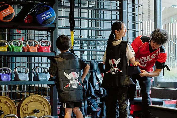 最大約20kgの赤髪印のベストを着て足腰を強化できる。BragMenオリジナルの鍛錬を体感しよう!